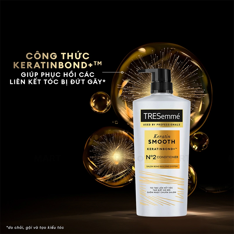 Công thức với nồng độ sulfate thấp, dành riêng cho tóc xơ rối không thể vào nếp. Sử dụng trọn bộ sản phẩm TRESemmé Keratin Smooth cho mái tóc Đẹp chuẩn sàn diễn mỗi ngày: Gội + Xả + Kem ủ + Xịt bảo vệ tóc khỏi nhiệt + Serum dưỡng tóc.