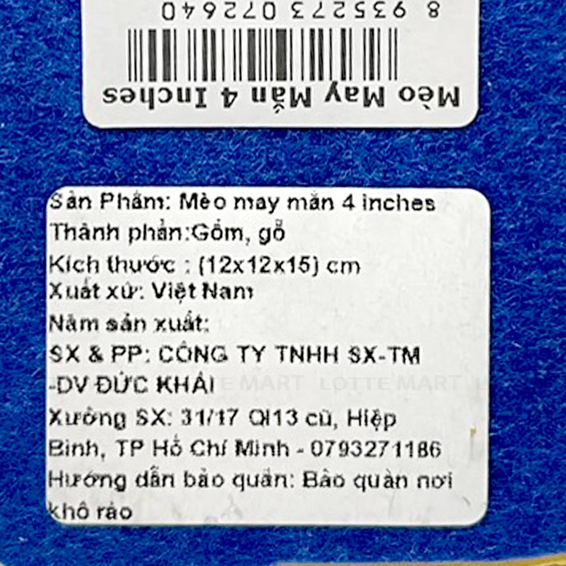 - Với kích thước 12 x 12 x 15cm, tượng được đặt trên đế gỗ chắc chắn, rất thích hợp để trang trí bàn làm việc, quầy thu ngân hoặc làm quà tặng ý nghĩa trong dịp khai trương, Tết hoặc các dịp đặc biệt.