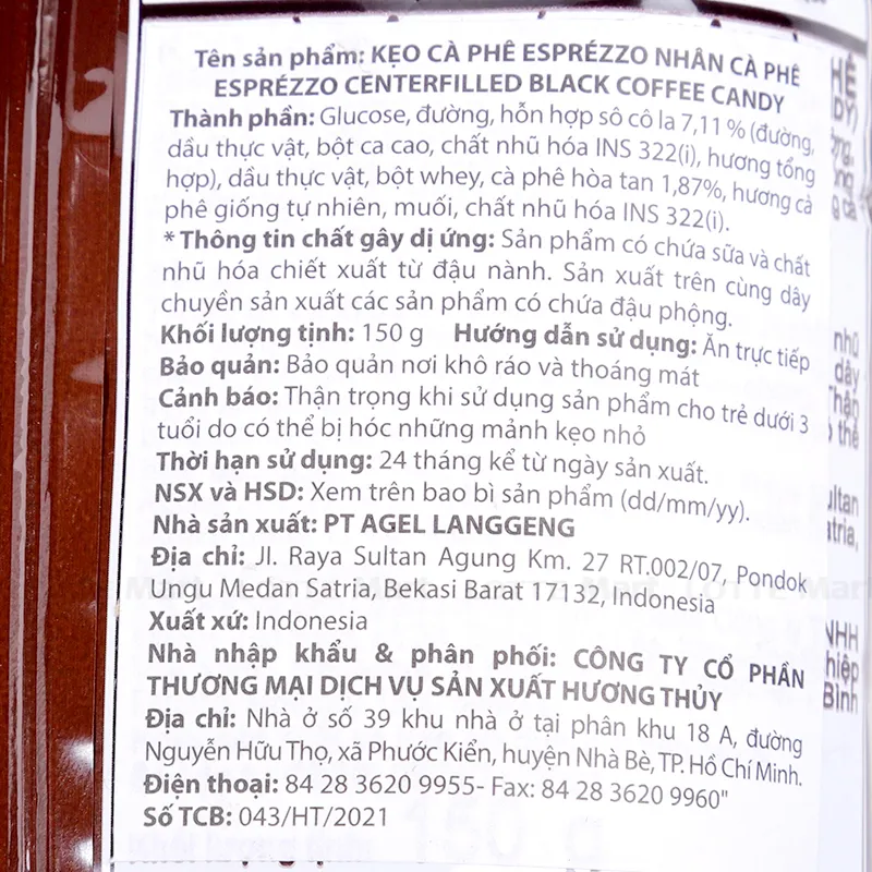 Kẹo Cứng Esprézzo Nhân Cà Phê Gói 150G