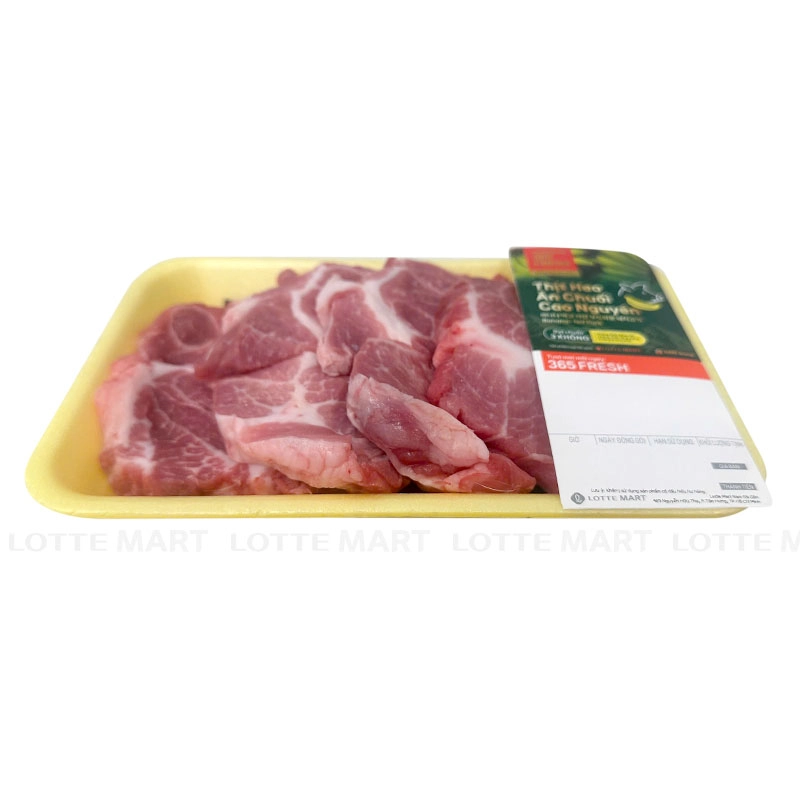 Nạc Dăm Heo Ăn Chuối Cắt Lát 365 Fresh được cắt lát sẵn, đóng gói cẩn thận và sạch sẽ trong khay, phù hợp để chế biến nhiều món ăn đa dạng như áp chảo, kho, rim.