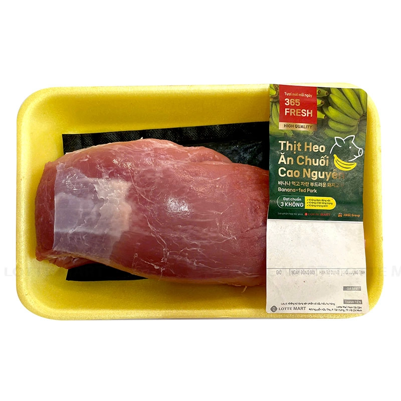 Thăn Chuột Heo Ăn Chuối 365 Fresh được đóng gói cẩn thận và sạch sẽ trong khay, phù hợp dùng để nướng, xào, làm chả lụa, hoặc chà bông.