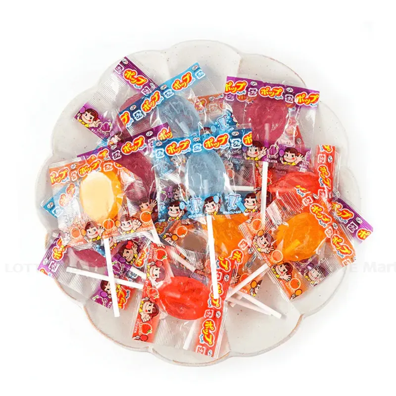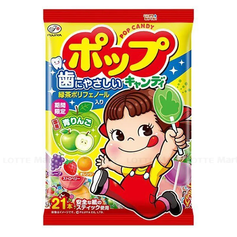 Kẹo Mút Fujiya với 4 vị Cam, Dâu, Nho và Táo Xanh thơm ngon hấp dẫn, khiến các bé thích mê. Được làm từ đường Oligo và Siro trái cây nên kẹo có vị ngọt chua dịu và hương thơm rất tự nhiên.
