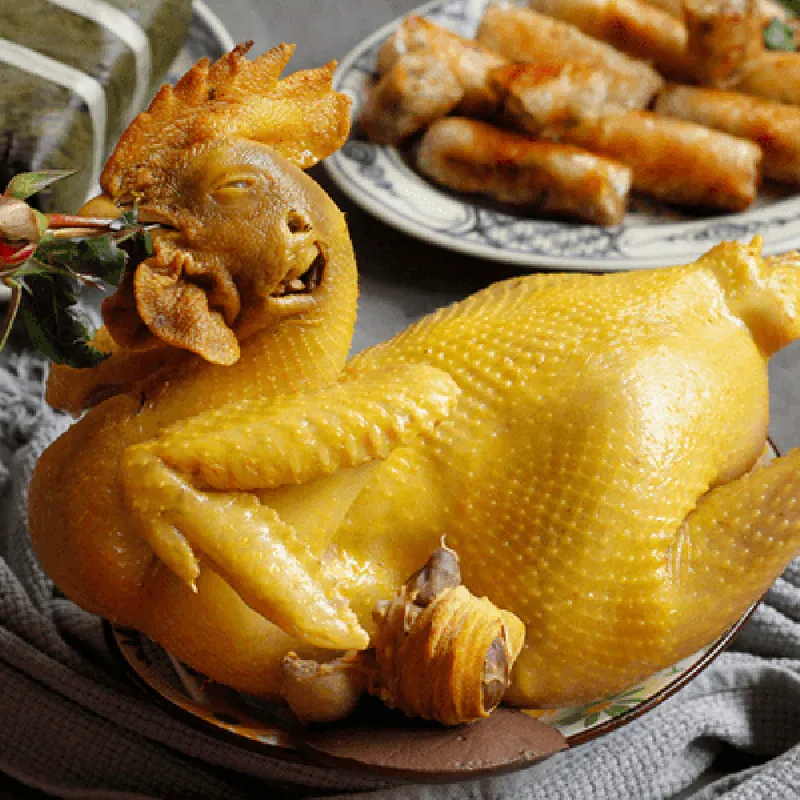 Gà chéo cánh tiên được tuyển chọn từ những con gà khỏe, chắc thịt, gà được chọn có trọng lượng từ 1.1kg - 1.4kg nên rất tiện lợi trong việc bày biện mâm cổ ngày Tết.