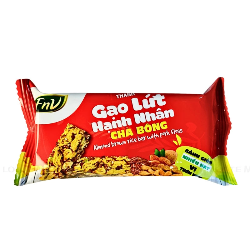 Thanh Gạo Lứt FnV Vị Hạnh Nhân Chà Bông là sự hòa quyện giữa gạo lứt giòn, hạt hạnh nhân bùi béo và lớp chà bông đậm đà, tạo nên món ăn vặt có hương vị mặn ngọt hài hòa.