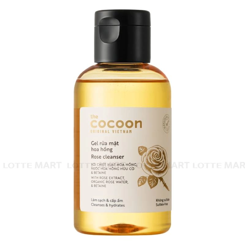 - Gel Rửa Mặt Cocoon Chiết Xuất Hoa Hồng là sản phẩm đến từ thương hiệu mỹ phẩm thuần chay Cocoon với thành phần kết hợp từ chiết xuất hoa hồng và nước cất hoa hồng hữu cơ, bổ sung thêm hoạt chất dưỡng ẩm bentaine và allantoin.