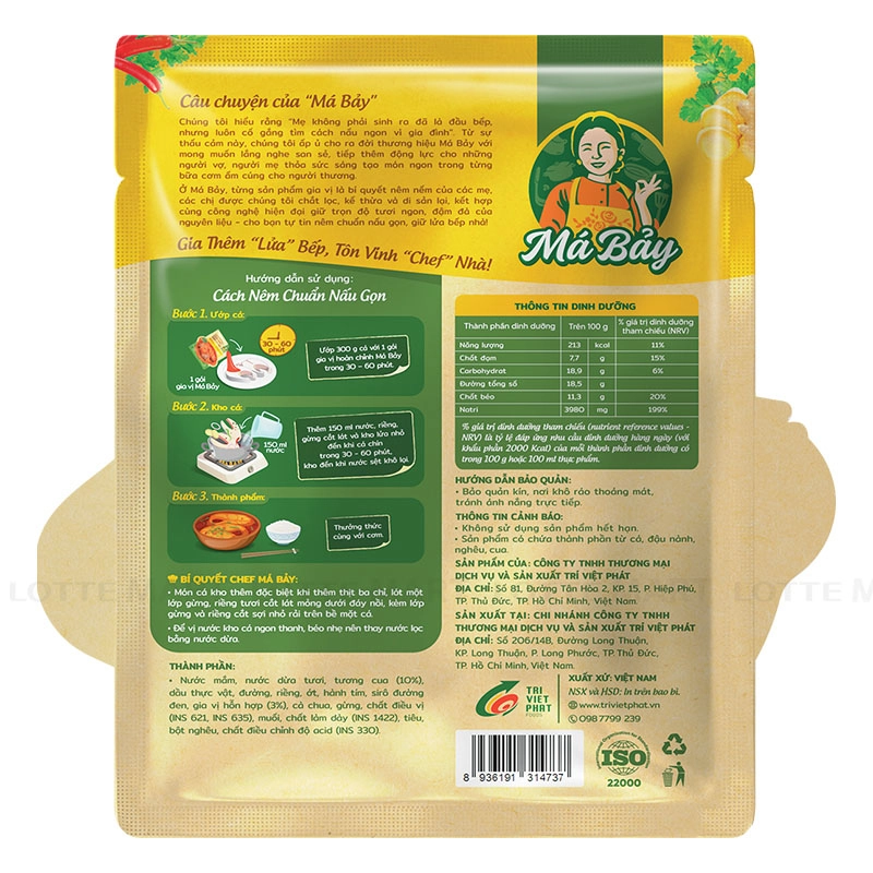 Xốt Gia Vị Hoàn Chỉnh Cá Kho Làng Vũ Đại Má Bảy là sản phẩm xốt gia vị được pha trộn sẵn, giúp bạn chế biến món cá kho Làng Vũ Đại nổi tiếng một cách nhanh chóng.