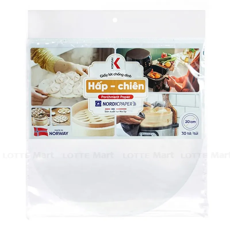 - Sản phẩm Giấy lót chống dính hấp chiên Kokusai không lỗ 20 cm (30 tờ/túi)r có độ chống dính nổi bật trên thế giới và đặc biệt chịu được nhiệt độ cao trong lò nướng.