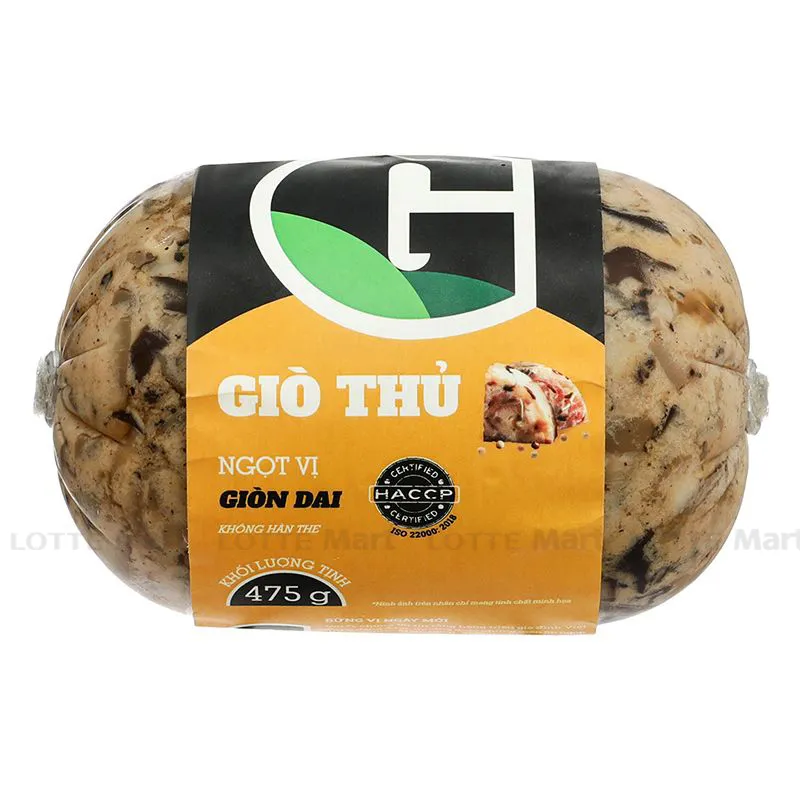 Giò Thủ G Kitchen Cây 475G thơm ngon hấp dẫn được làm sẵn tiện lợi chính hãng thương hiệu chả G Kitchen nổi tiếng trên thị trường. Giò Thủ G Kitchen Cây 475G được làm từ những nguyên liệu sạch và dinh dưỡng, giòn dai, không hàn the, đảm bảo an toàn. Sản phẩm ăn liền hoặc chế biến được thành nhiều món ngon hấp dẫn. Thành phần: Thịt đầu heo, da heo, nấm mèo, tỏi, hành, đầu cọ olein tinh luyện, đường, nước mắm, tiêu, muối iot, chất điều chỉnh độ acid, chất điều vị, chiết xuất nấm men, chất chống oxy hóa, bột ngũ vị hương. Cách dùng: Dùng ngay hoặc chế biến thành các món ăn. Bảo quản: Bảo quản ở nhiệt độ từ 0 - 4 độ C hoặc trong ngăn mát tủ lạnh. Thương hiệu: G Kitchen (Việt Nam). Sản xuất tại: Việt Nam.