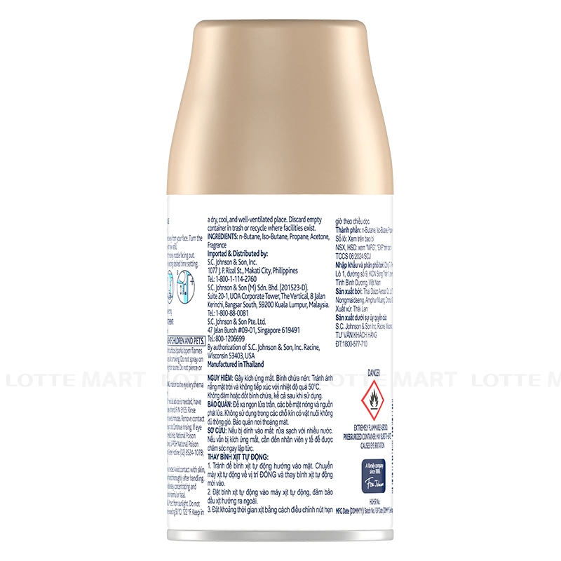 - Xịt tự động được sản xuất theo công nghệ hiện đại, sử dụng các thành phần tự nhiên, đảm bảo cho không gian sống của bạn có hương thơm tinh khiết.