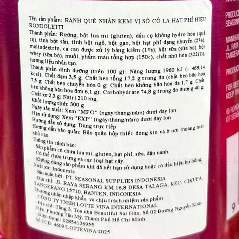 Bánh Quế Rondoletti Nhân Kem Vị Sô Cô La Hạt Phỉ là sản phẩm đến từ Indonesia, là lựa chọn tuyệt vời dành cho những người yêu thích vị ngọt béo, đậm đà nhờ sự kết hợp lý tưởng của sô cô la và vị thơm đặc trưng của hạt phỉ.