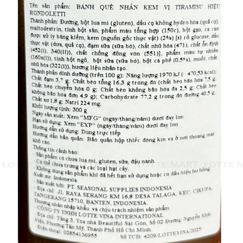 Bánh Quế Rondoletti Nhân Kem Vị Tiramisu là sản phẩm đến từ Indonesia, một lựa chọn tuyệt vời dành cho những người yêu thích hương vị cà phê và kem béo.