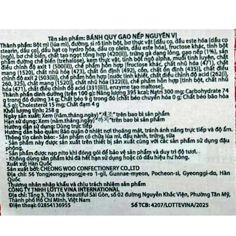 Sản phẩm có chứa lúa mì, đậu nành, trứng, sữa.