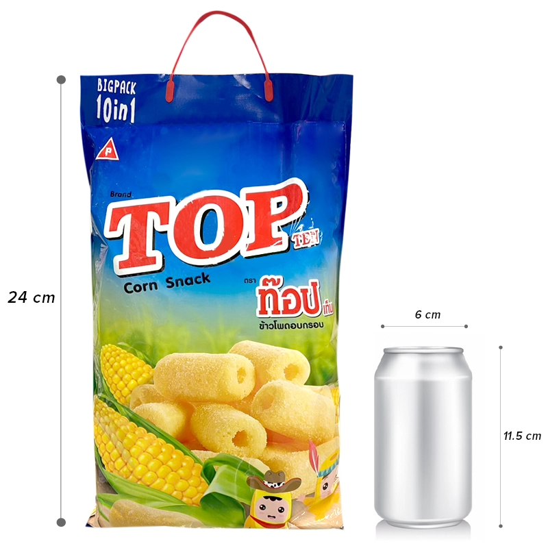 - Snack Bắp Mix Ba Vị Bigsize Top Ten là món ăn vặt "khổng lồ" đến từ Thái Lan, đang gây sốt cộng đồng yêu thích ẩm thực bởi kích thước "siêu to khổng lồ" và hương vị tuyệt vời. Mỗi gói snack này chứa tới 10 gói nhỏ bên trong cùng ba hương vị là socola, vị sữa và vị ớt, giúp bạn thỏa sức thưởng thức từng miếng snack bắp giòn tan. Sản phẩm không chỉ hấp dẫn người ăn bởi kích thước "hoành tráng", mà còn bởi hương vị đặc biệt, phù hợp cho những buổi tụ tập bạn bè, nhâm nhi trong các chuyến dã ngoại hoặc khi thư giãn.
