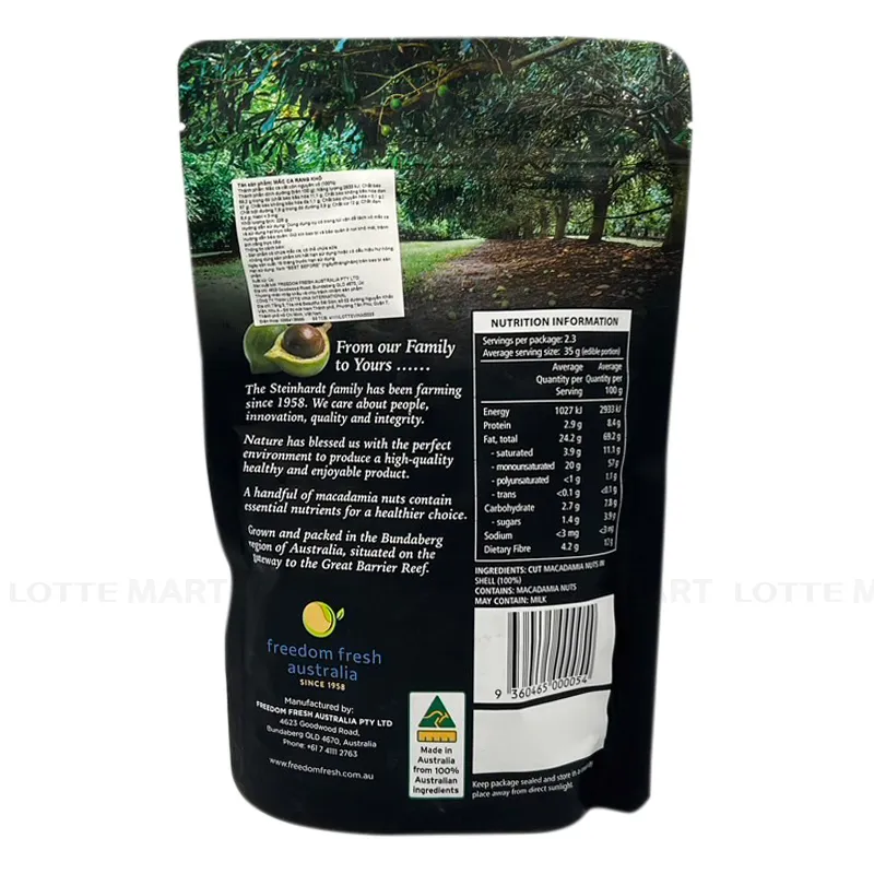 - Hạt macca Happy Nut Freedom Fresh Australia được trồng ngay tại vùng Bundaberg, cung cấp cho khách hàng những sản phẩm tươi ngon và đáng tin cậy.
