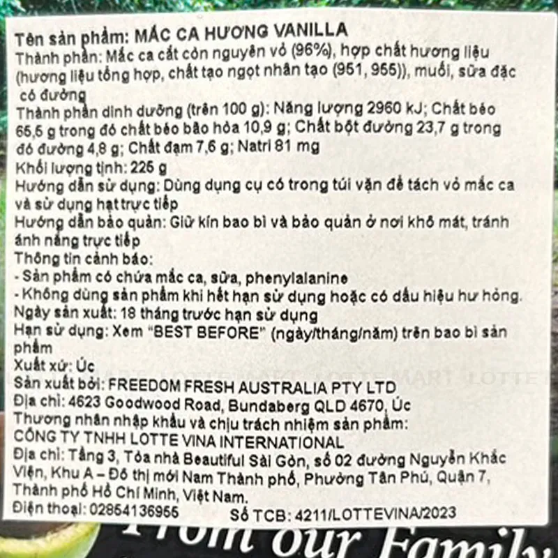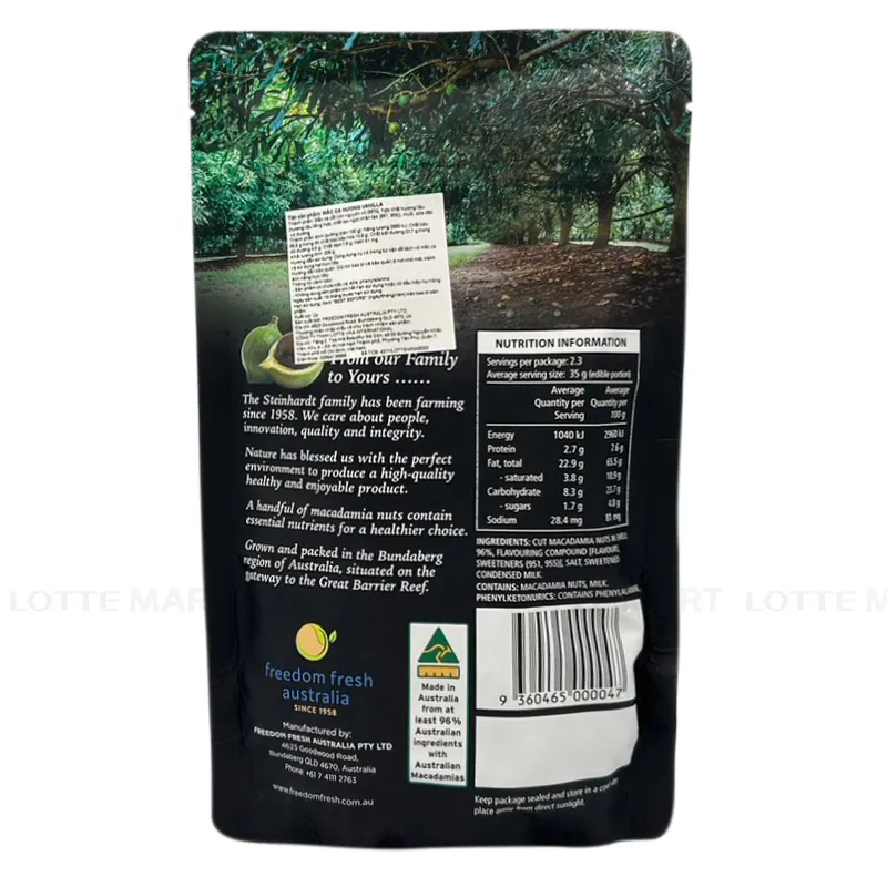 - Hạt macca Happy Nut Freedom Fresh Australia được trồng ngay tại vùng Bundaberg, cung cấp cho khách hàng những sản phẩm tươi ngon và đáng tin cậy.