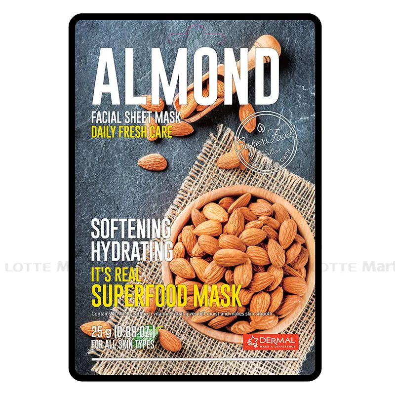- Công dụng: Mặt Nạ Giấy Dermal It's Real Super Food Mask Chiết Xuất Hạnh Nhân 25G cung cấp vitaminn E và hạnh nhân giúp cấp ẩm và làm mịn da.