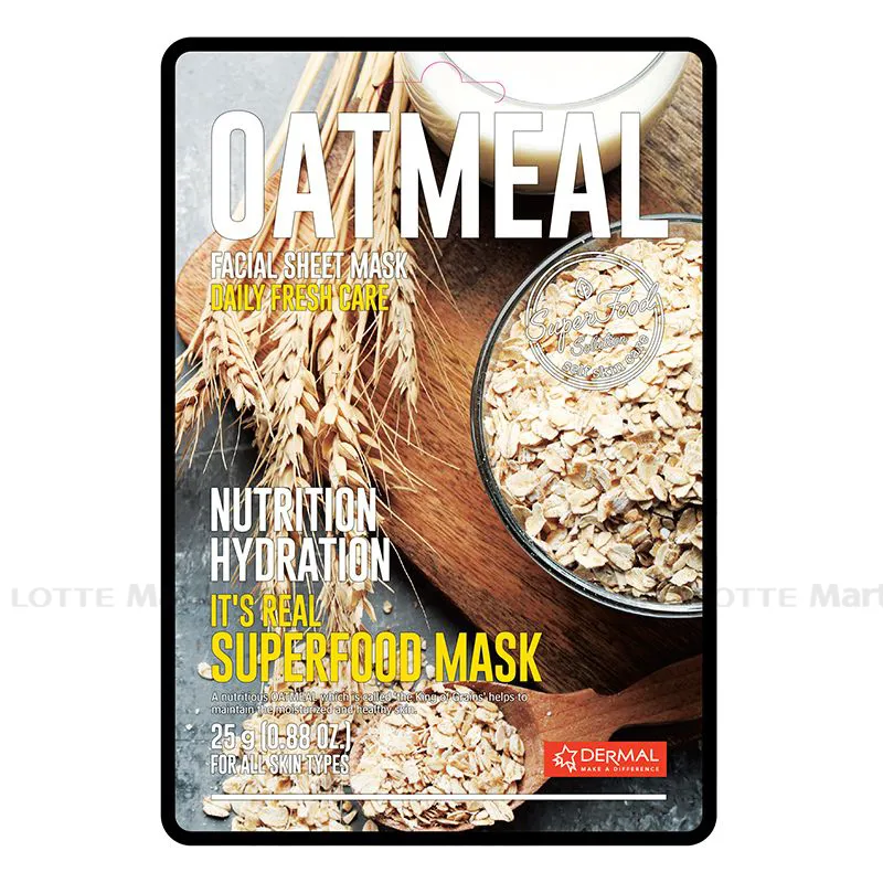 - Superfoods - Siêu thực phẩm từ xưa đến nay đã được quan tâm và đánh giá cao trong chế biến thực phẩm vì nó chứa nhiều chất dinh dưỡng tốt. Chính vì điều đó nên Dermah đã chọn lọc và sử dụng các loại siêu thực phẩm nổi bật vào phương thức dưỡng da bằng Mặt Nạ Giấy Dermal It's Real Super Food Mask Chiết Xuất Yến Mạch 25G, giữ cho làn da của bạn săn chắc, khỏe mạnh và bảo vệ da.