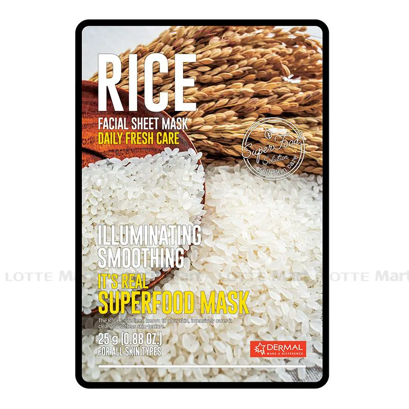 - Superfoods - Siêu thực phẩm từ xưa đến nay đã được quan tâm và đánh giá cao khi sử dụng làm thực phẩm, chế biến món ăn vì nó chứa nhiều chất dinh dưỡng tốt. Chính vì điều đó nên Dermah đã chọn lọc và sử dụng các loại siêu thực phẩm nổi bật vào phương thức dưỡng da bằng Mặt Nạ Giấy Dermal It's Real Super Food Mask Chiết Xuất Gạo 25G, giúp da thư giãn, cung cấp dưỡng chất cho da, bổ sung vitamin từ trái cây, thực phẩm cho bạn một làn da tươi sáng và khỏe mạnh.