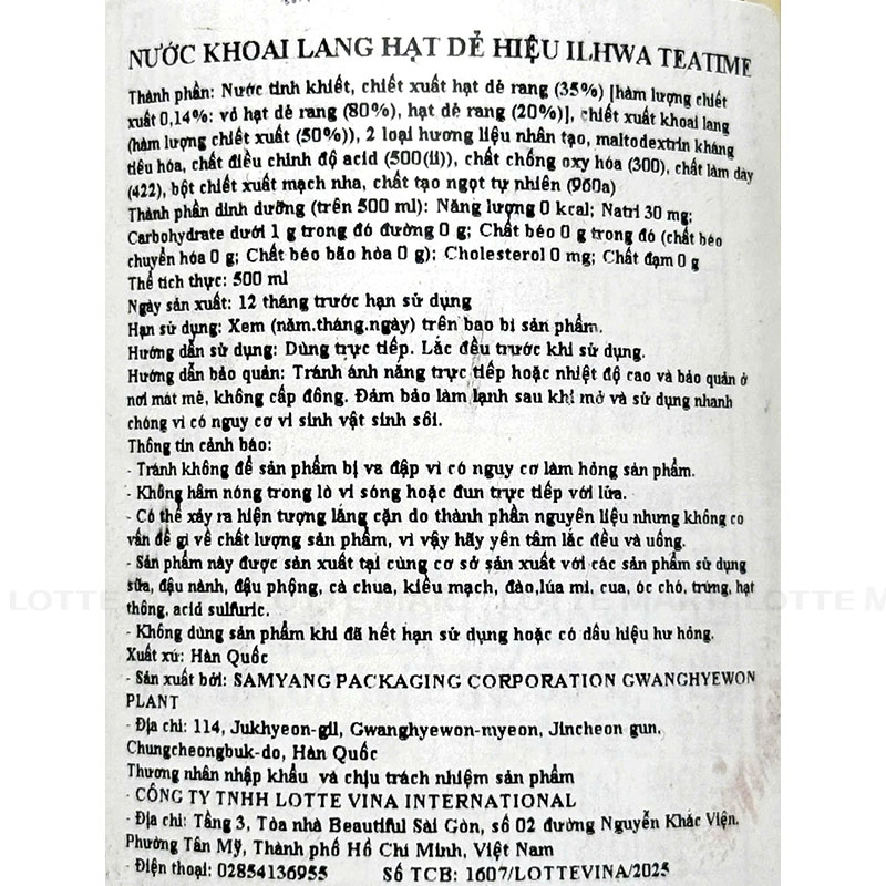 Nước Ilhwa Teatime Vị Khoai Lang Hạt Dẻ Không Đường 500ml