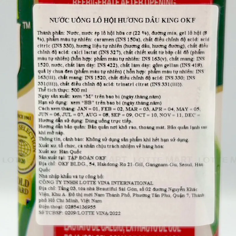 - Nước Nha Đam OKF Vị Dâu Chai 500ml là một trong những dòng sản phẩm giải khát rất được ưa chuộng tại thị trường Hàn Quốc. Sản phẩm được sản xuất bởi OFK - thương hiệu uy tín trên thị trường thức uống nha đam, đã sản xuất ra hàng loạt sản phẩm nước nha đam kết hợp với nhiều loại trái cây khác nhau, được đông đảo người tiêu dùng trên thế giới yêu thích và tin dùng.