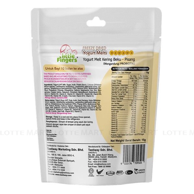 - Sữa Chua Sấy Lạnh Vị Chuối Little Fingers được sản xuất tại Malaysia, với công thức đặc biệt, sản phẩm bổ sung nhiều lợi khuẩn, vitamin và khoáng chất thiết yếu, giúp bé tiêu hóa và hấp thu tốt. Điều này không chỉ tăng cường sức khỏe mà còn nâng cao hệ miễn dịch cho trẻ trong giai đoạn phát triển quan trọng.