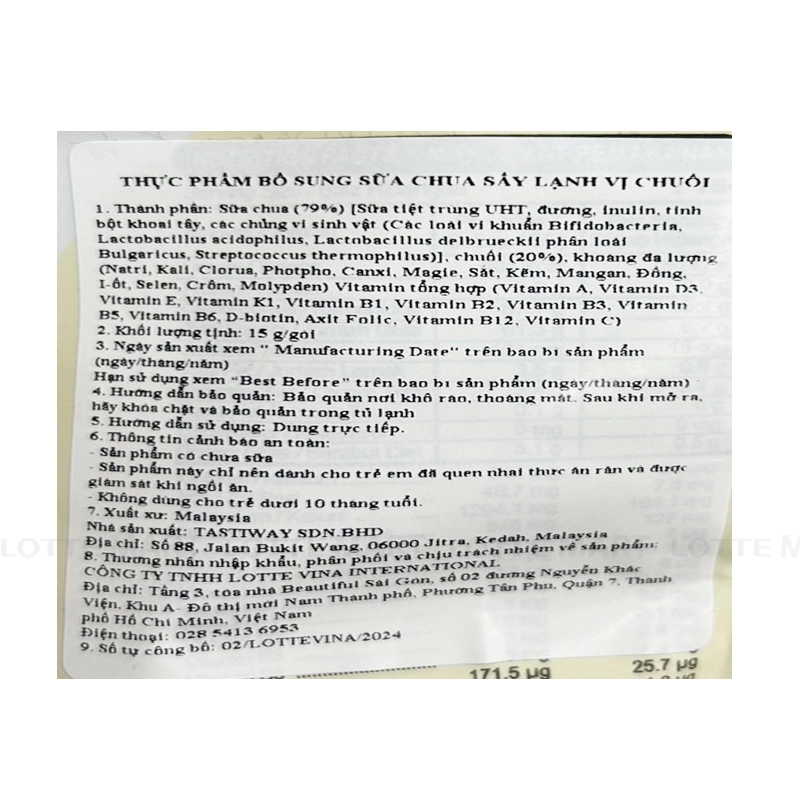 - Một điểm nổi bật của sản phẩm là phương pháp sấy thăng hoa, giúp giữ nguyên hương vị thơm ngon của chuối trong từng viên sữa chua. Phương pháp này không chỉ mang lại trải nghiệm ăn uống hấp dẫn mà còn bảo toàn tối đa các chất dinh dưỡng cần thiết, giúp bé phát triển khỏe mạnh.