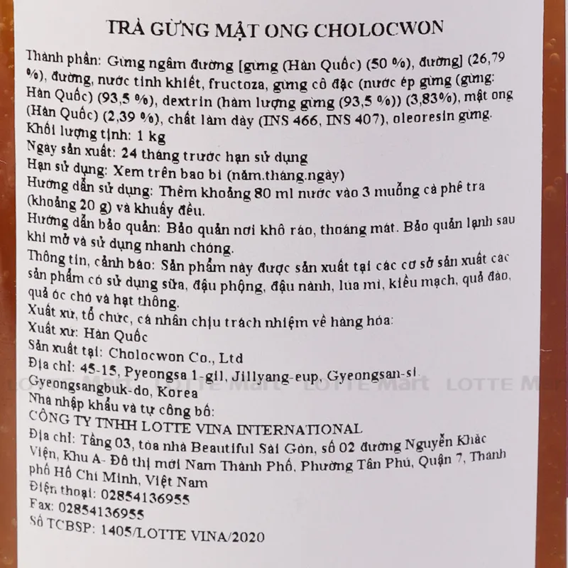 Thành phần: Gừng cô đặc 93.5%, Đường, Nước tinh khiết, Fructoza, Gừng ngâm đường 26.79%,...