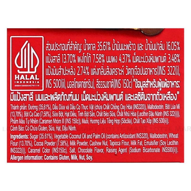- Đường, dầu dừa, dầu cọ, bột cacao, sữa bột hạt điều, tinh bột sắn, chất béo sữa, chất nhũ hóa, phẩm màu tự nhiên, hương liệu tổng hợp, chất tạo xốp...