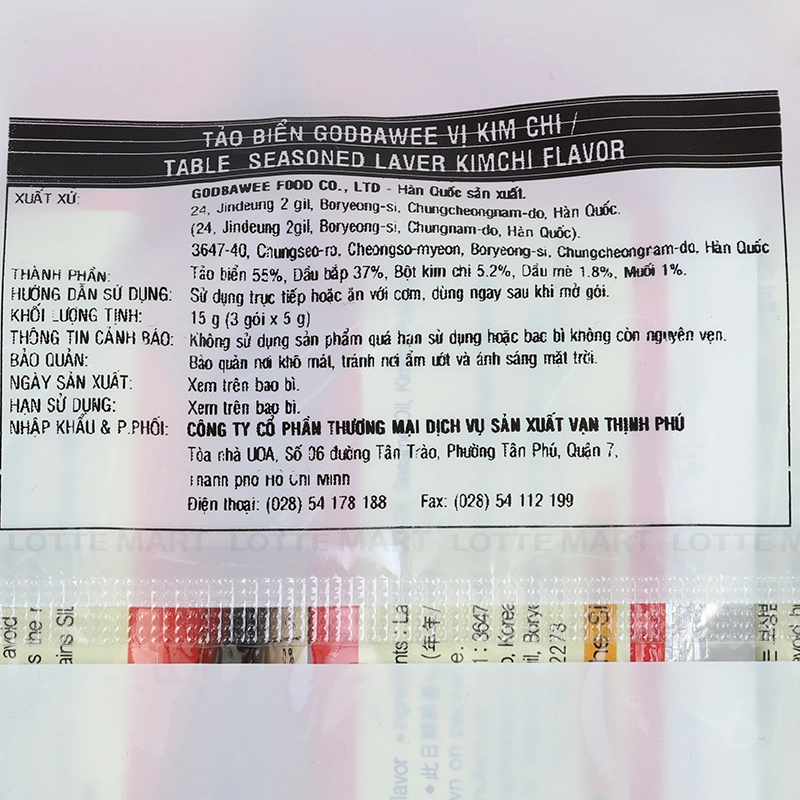 Tảo Biển Godbawee Vị Kim Chi Lốc 3 Gói 5g
