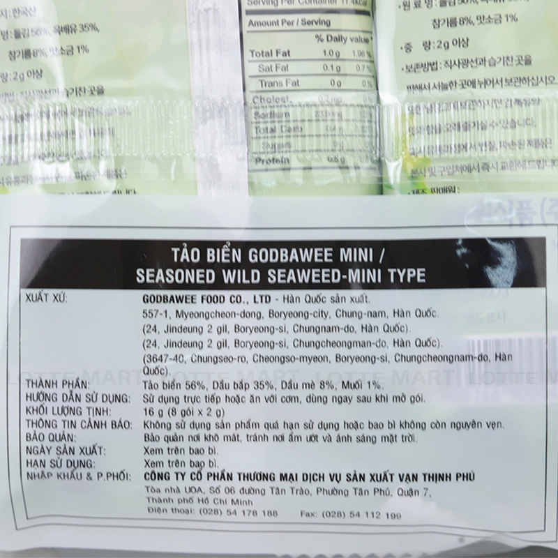 Tảo Biển Godbawee Vị Truyền Thống Lốc 8 Gói 2g