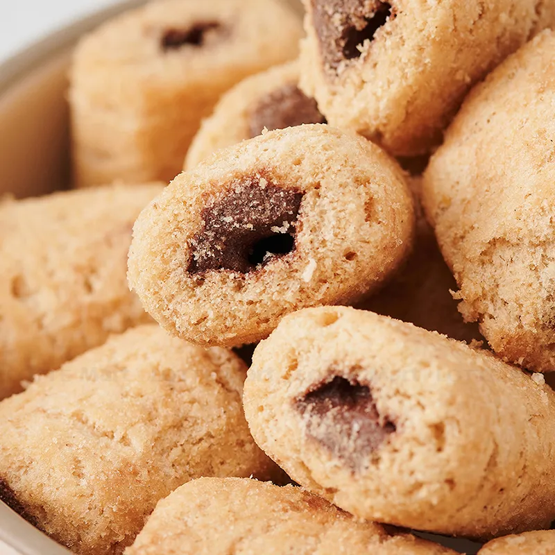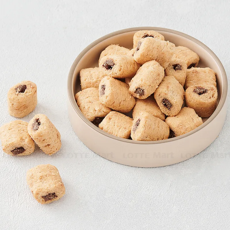 - Bánh được cuộn tròn với lớp vỏ bánh mặn mặn, vàng ươm, giòn rụm được làm từ 19 loại ngũ cốc gồm gạo lứt, gạo trắng, bắp,... kết hợp với nhân kem socola quyến rũ bên trong mang đến hương vị hấp dẫn thích miệng, ăn vào cực kỳ thơm ngon.