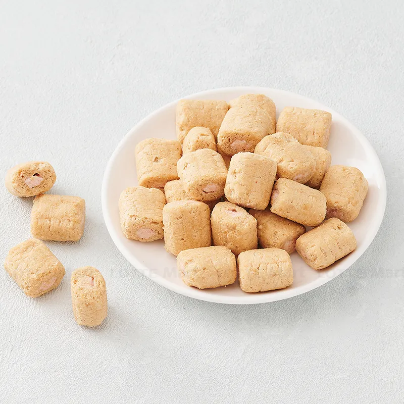 - Bánh được cuộn tròn với lớp vỏ bánh mặn mặn, vàng ươm, giòn rụm được làm từ 19 loại ngũ cốc gồm gạo lứt, gạo trắng, bắp,... kết hợp với nhân kem dâu tây ngọt ngào bên trong mang đến hương vị hấp dẫn thích miệng, ăn vào cực kỳ thơm ngon.