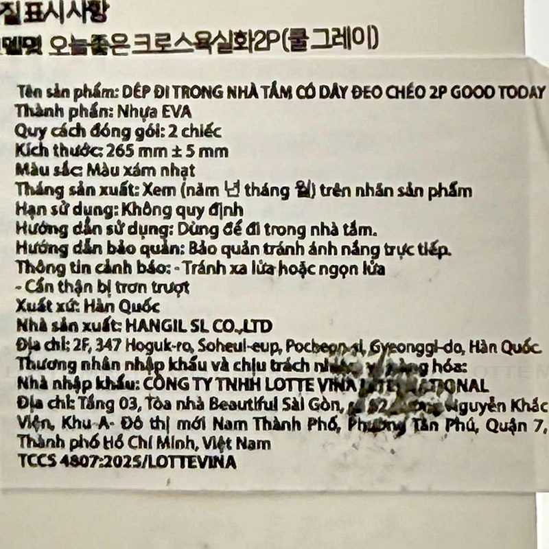 Dép Đi Trong Nhà Tắm Good Today Quai Chéo Màu Xám nhập khẩu Hàn Quốc được làm từ nhựa EVA nhẹ, mang lại cảm giác êm chân khi sử dụng.