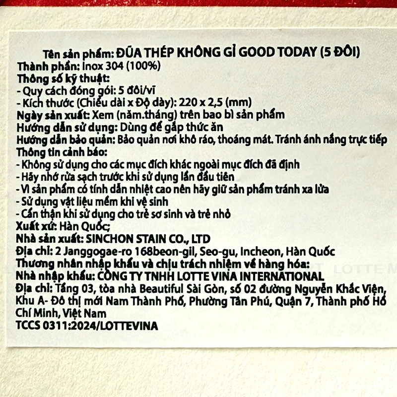 Đũa Thép Không Gỉ Good Today nhập khẩu Hàn Quốc được làm từ chất liệu Inox 304, có khả năng chống gỉ sét.