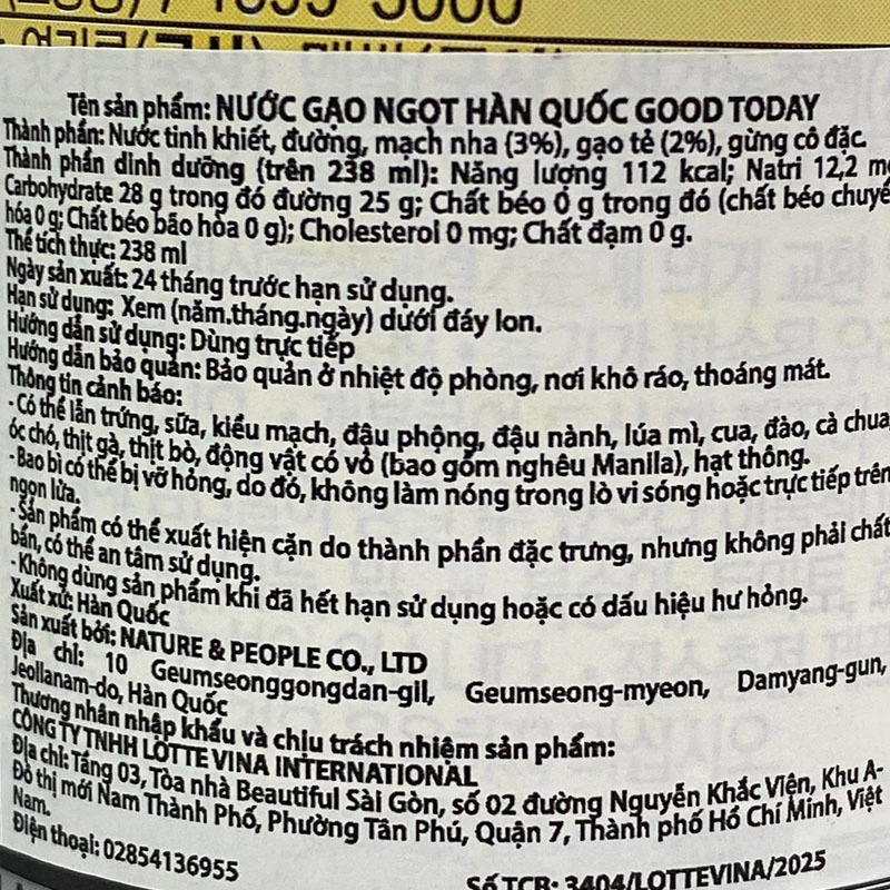 Nước Gạo Ngọt Good Today nhập khẩu Hàn Quốc được chế biến từ nguồn nguyên liệu gạo chọn lọc kỹ lưỡng, giữ được hương vị truyền thống tinh tế của xứ sở Kim Chi.