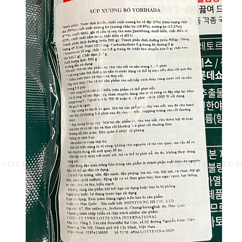 Súp Xương Bò Yorihada nhập khẩu Hàn Quốc với nước dùng được ninh từ xương bò liên tục trong hơn 15 giờ đồng hồ.