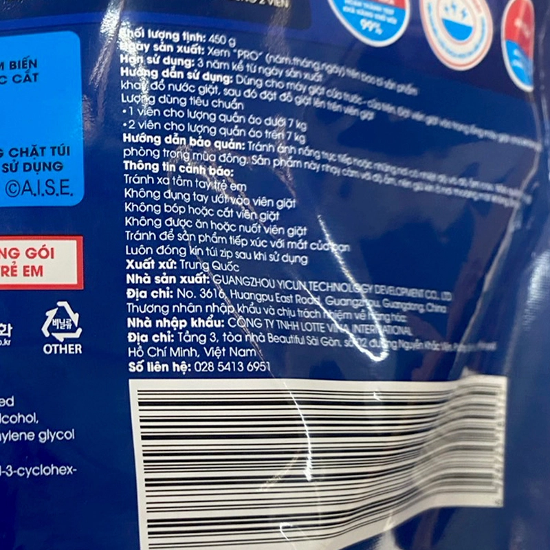- Đóng kín bao bì trước khi sử dụng để tránh viên giặt bị chảy do hút ẩm.