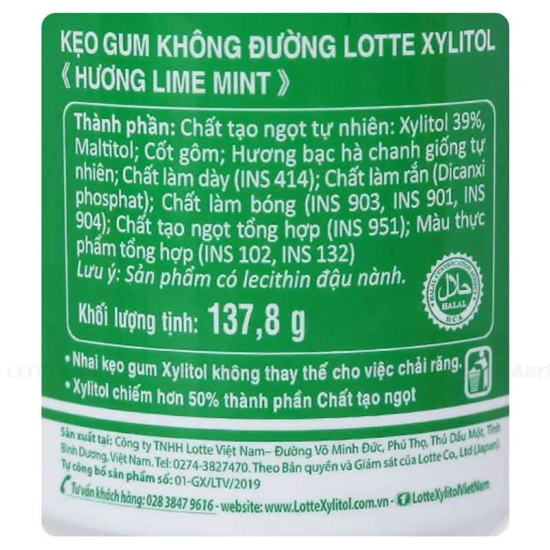Kẹo Gum Xylitol Không Đường Hương Lime Mint Hũ 130.5g