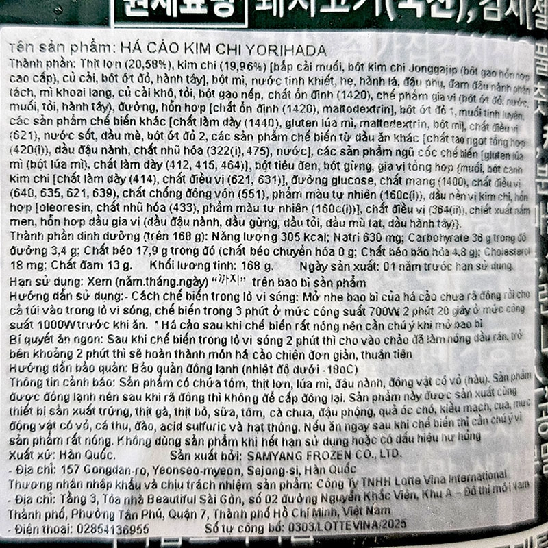 - Há Cảo Kim Chi Yorihada Gói 168G được chế biến từ các nguyên liệu chất lượng, qua quá trình lựa chọn kỹ càng, đảm bảo độ tươi ngon và tự nhiên của món ăn. Sau khi chế biến, sản phẩm vẫn giữ được nguyên hương vị của các nguyên liệu, hình dáng đẹp mắt, ngon miệng khi dùng.