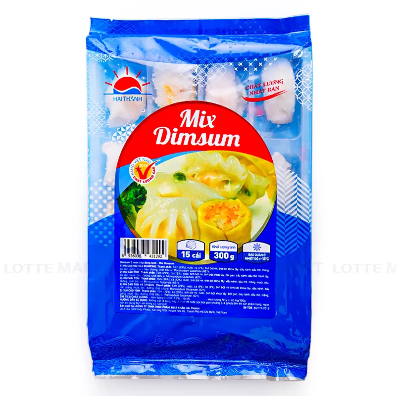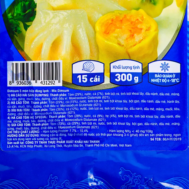 Thành phần: Há cảo hải sản, há cảo tôm, xíu mại tôm, há cảo tôm hẹ, sủi cảo tôm.
