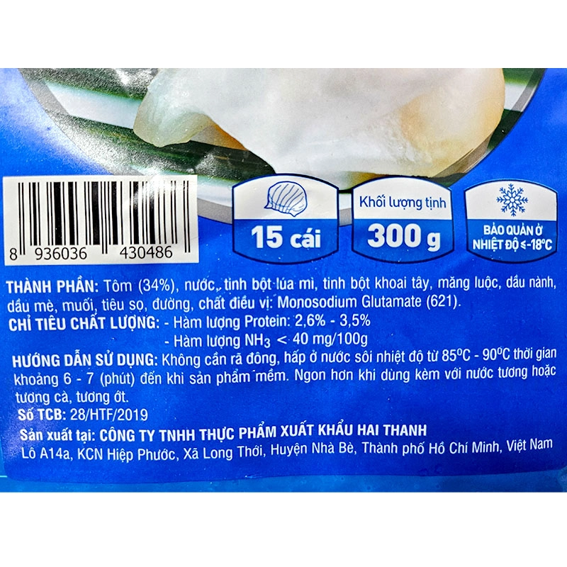 Há cảo tôm Jumbo Hải Thanh là sản phẩm đã được chế biến sẵn, tiện lợi, giúp bạn có được những bữa ăn nhanh chóng mà vẫn đảm bảo thơm ngon khi không có nhiều thời gian nấu nướng. Sản phẩm được làm từ các thành phần chính với tôm, bột mì, măng… cùng hỗn hợp gia vị muối, tiêu, bột ngọt rất vừa miệng. Hơn nữa, quy trình chế biến tuân thủ nghiêm ngặt các tiêu chuẩn về vệ sinh an toàn thực phẩm, không chứa chất bảo quản độc hại, nên bạn hoàn toàn yên tâm khi sử dụng sản phẩm.