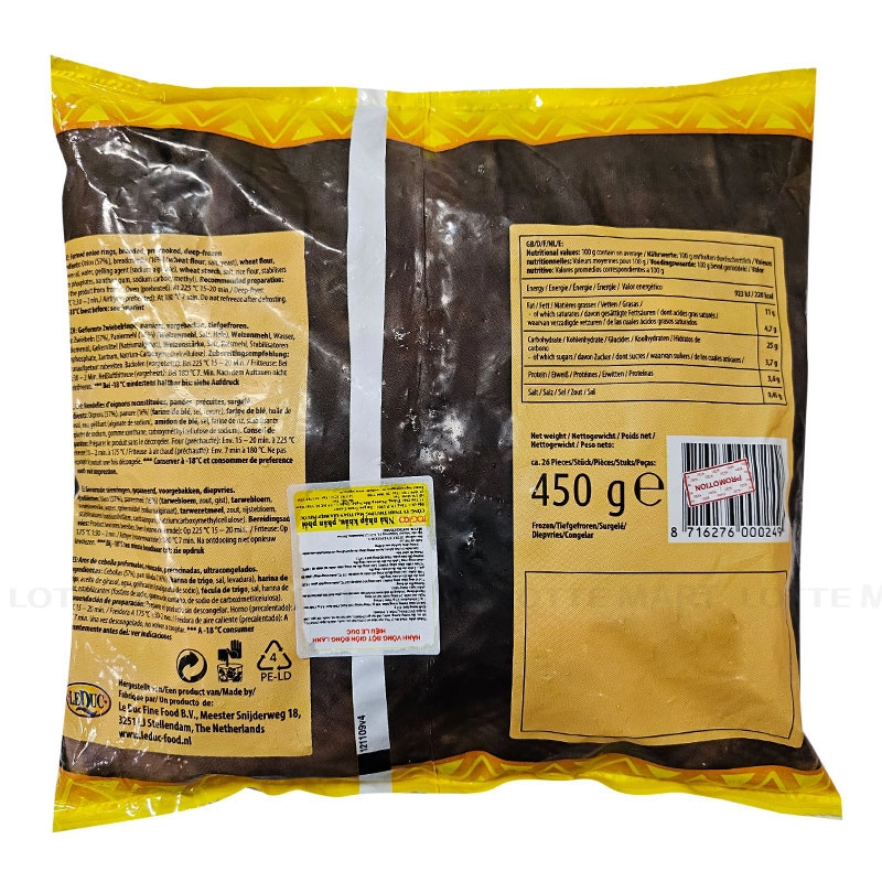 - Hành tây (57%), vụn bánh mì (16%) (bột mì, muối, chất ổn định), bột mì, dầu hướng dương, nước, chất tạo gel, tinh bột lúa mì, muối, bột gạo, chất ổn định.