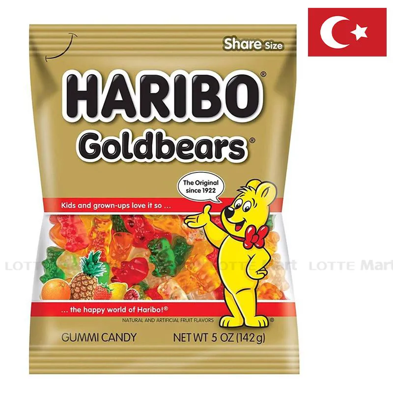 Kẹo dẻo Haribo Goldbears có vị ngọt, chua dịu vị hoa quả được chiết xuất từ nước ép trái cây tươi nguyên chất của dâu, chanh, cam, thơm, táo và mâm xôi.., với hình gấu dễ thương bắt mắt. Từng viên kẹo dẻo, ngọt ngào, mềm mại, bạn sẽ không thể cưỡng nổi sức hấp dẫn khi thưởng thức chúng.