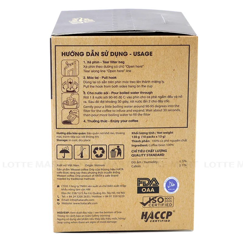 - 100% cà phê nguyên chất.