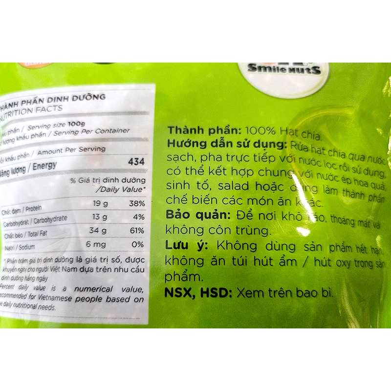 - Hạt Chia Organic Oh Smile Nuts là một thực phẩm bổ dưỡng, lý tưởng cho việc chăm sóc sức khỏe. Việc bổ sung hạt chia thành một phần trong chế độ ăn uống hàng ngày của bạn sẽ đem đến những lợi ích tốt cho sức khỏe của người dùng.