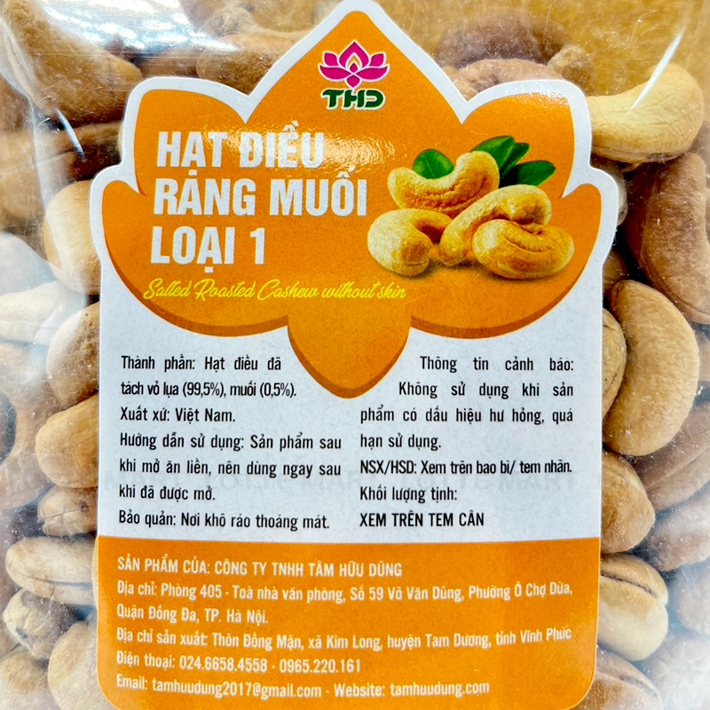 - Hạt Điều Tâm Hữu Dũng Rang Muối Bóc Vỏ là món ăn vặt bổ dưỡng, thơm ngon, được chế biến từ hạt điều tuyển chọn và rang với muối, mang lại hương vị đặc trưng và sự giòn tan khó cưỡng.
