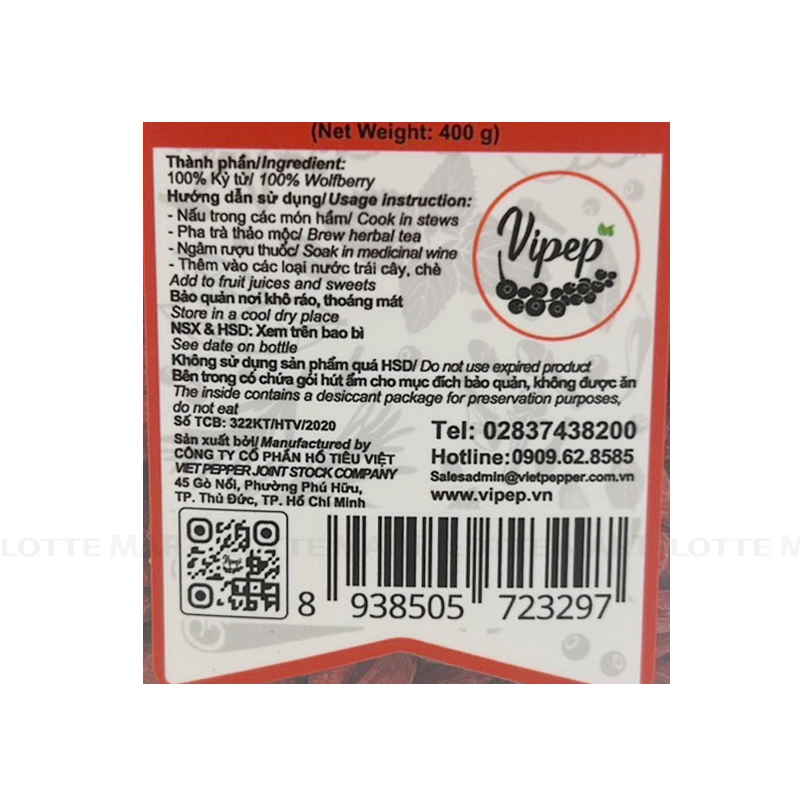- Hạt Kỷ Tử Vipep Hũ 400G mang đến một lựa chọn bổ dưỡng và tiện lợi cho chế độ ăn uống hàng ngày của bạn. Hạt kỷ tử, là một nguồn thực phẩm giàu chất chống oxy hóa, vitamin C, vitamin A, và khoáng chất thiết yếu như sắt và kẽm.