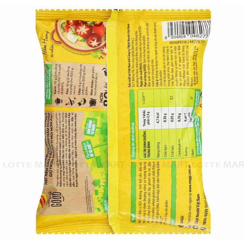- Hạt Nêm Maggi Nấm Hương với thành phần nấm hương tự nhiên thanh ngọt giúp tăng thêm vị ngọt đậm đà và mùi thơm tự nhiên cho món ăn tròn vị. Sản phẩm với thành phần nấm hương tự nhiên sẽ là sự kết hợp tuyệt vời cho mọi nguyên liệu món ăn từ rau củ đến thịt cá.