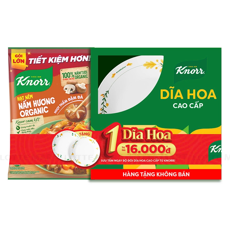 Hạt Nêm Nấm Hương Organic Knorr Gói 800G Kèm Dĩa Hoa 17.7cm