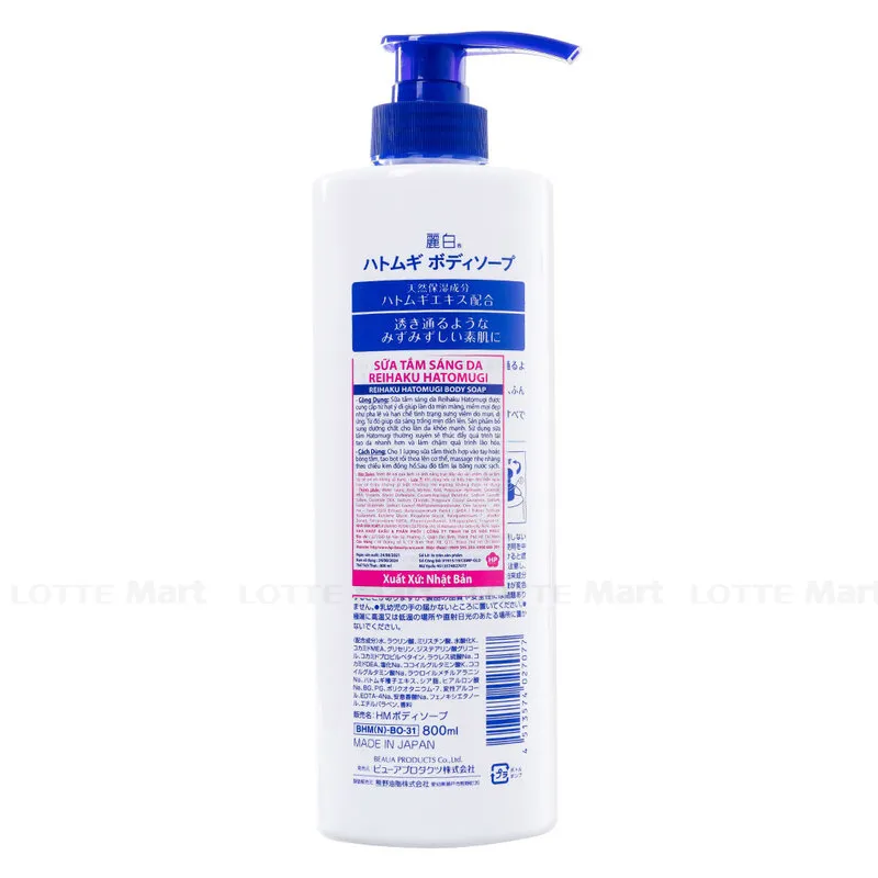 - Sữa Tắm Hatomugi Dưỡng Ẩm & Làm Sáng Da 800ml đến từ thương hiệu Hatomugi thường xuyên lọt vào top sữa tắm được yêu thích của các tạp chí làm đẹp nổi bật tại Nhật, với thành phần chiết xuất hạt ý dĩ giàu dưỡng chất, không chỉ giúp làm sạch da mà còn dưỡng ẩm cho da, nuôi dưỡng cho làn da sáng mịn từ bên trong.